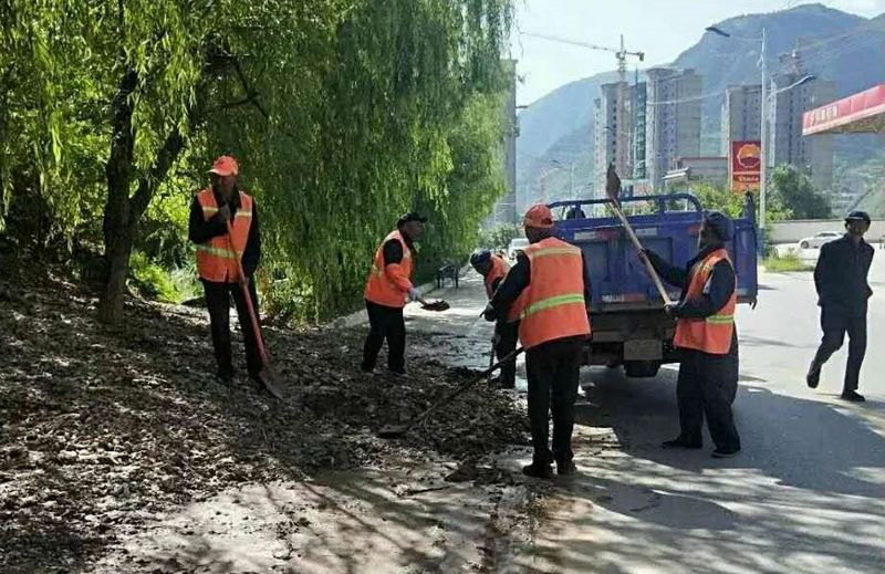 今天上午8点,城区环境工人正在拿着铁锨、扫帚走上国道212线月亮湾公路两边,对暴雨冲刷产生的淤泥、垃圾、石块、树枝树叶等进行及时清理。“城市美容师”们用力铲除着道路两侧淤泥。 趁着雨水“休战”期间,城管人迅速出击,开启新一轮“修复模式”。