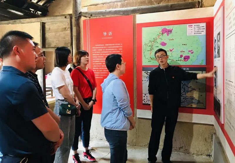 在第99个建党节来临之际,为了庆祝党的生日,缅怀党的历史,6月23日,市委组织部组织党员干部深入徽县嘉陵镇稻坪村开展迎“七一”主题党日暨党支部结对共建活动。在“甘肃省文化遗产‘历史再现’工程博物馆”——稻坪红色记忆展览馆里,工作人员给大家讲