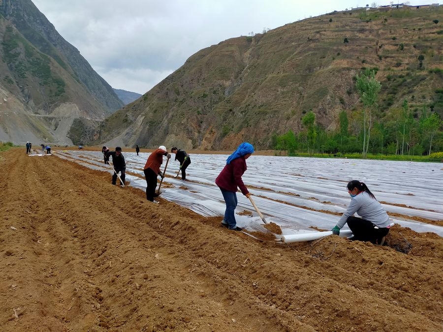 4月22日,位于礼县西汉水下游的雷坝镇坪头村大兴种植养殖农民专业合作社抢抓春耕生产大好时机,组织群众开展辣椒种植前的覆膜工作,为该合作社120多亩的辣椒种植做准备。通联:礼县委宣传部 王书昉 摄