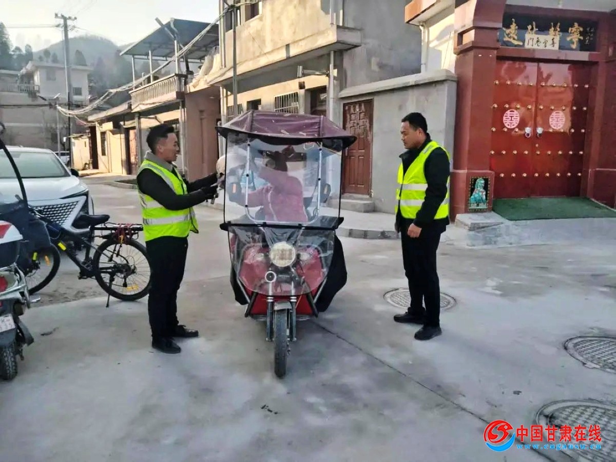 中国甘肃在线两当讯 进入冬季,低温雨雪冰冻等恶劣天气增多,为有效减少交通事故的发生,进一步保障人民群众出行安全,连日来,两当县城关镇持续开展道路交通安全劝导工作。劝导人员主要在交通主干道、村组路口、易结冰湿滑等重点路段,采用“劝导+引导”的