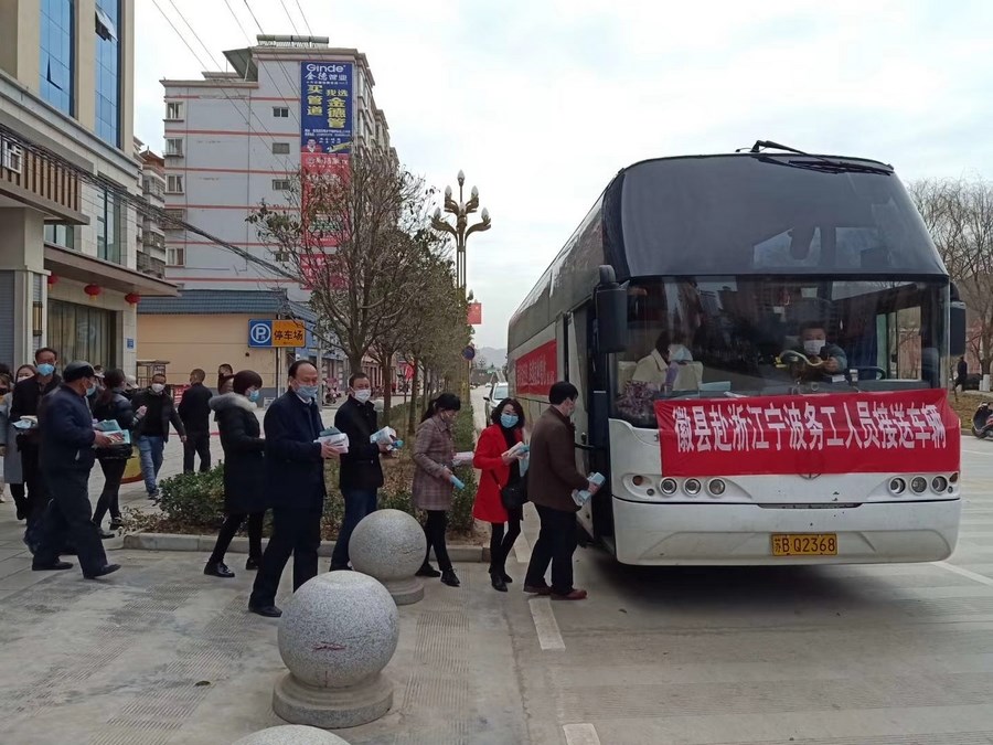 为确保疫情防控和稳定就业两手抓、两手硬,切实解决外出务工人员“出行难”问题,有效保障外出务工人员快速、安全、有序返岗就业,徽县人社局主动联系复工企业,大力宣传返岗复工政策,建立了与劳务输入地政府、人社部门和企业之间的三方联系沟通机制,采用统