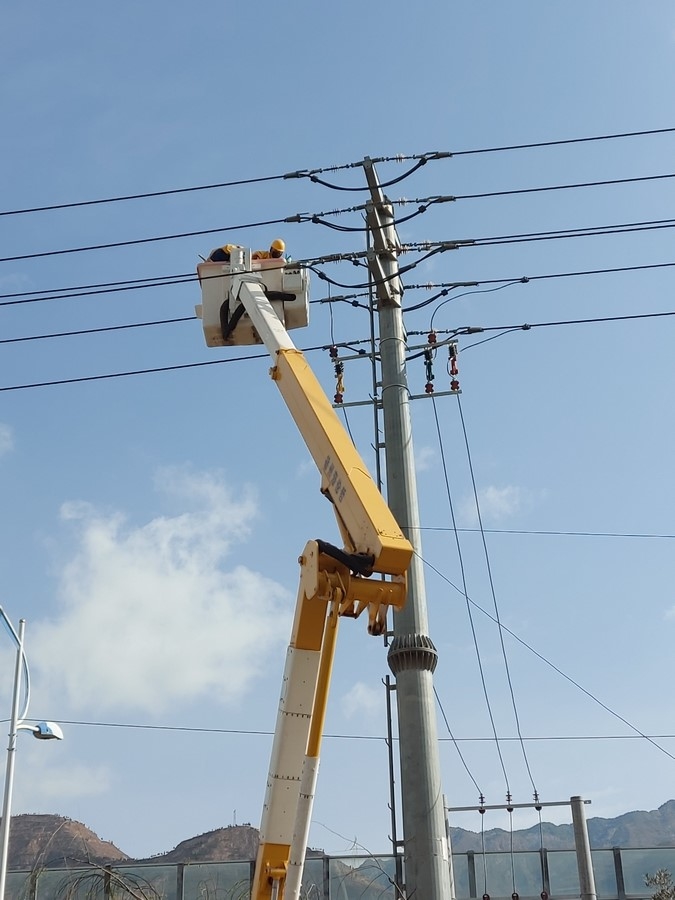 • 武都区供电公司工人正在带电抢修作业