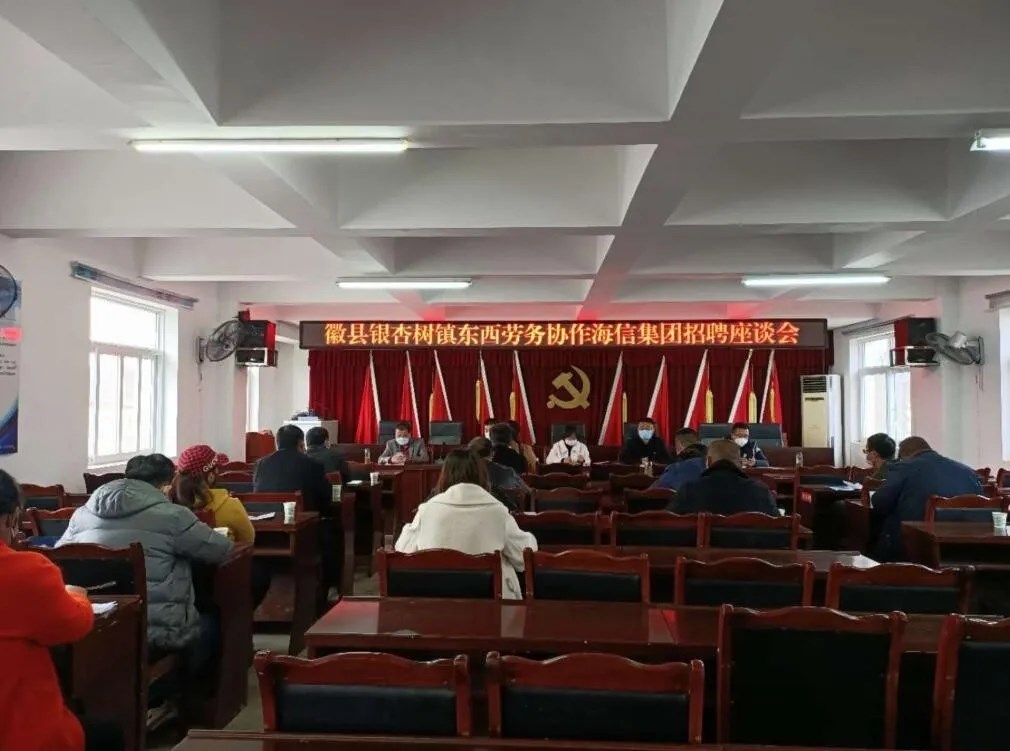 春节后是务工人员外出务工的黄金时节,徽县全面开展宣传动员活动,引导贫困家庭富余劳动力转变观念,抢抓机遇,找到适合自己的岗位,广泛开展转移就业,形成户户关注、人人参与的良好氛围。3月2日下午在银杏树镇,召开了东西劳务协作海信集团招聘座谈会,座