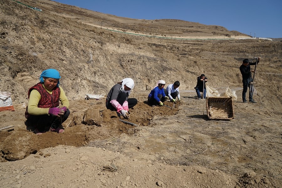 24日上午,宕昌县哈达铺镇金木村的王胜平一家正在田间刨收党参苗子。王胜平告诉记者,他家今年有两亩多地的党参苗子留床面积,每亩能刨800多斤,自己人手不够,于是就找来了亲戚帮忙。 此时,在离金木村不远的上哈竜村,后相龙一家,也正将刨好的党参苗
