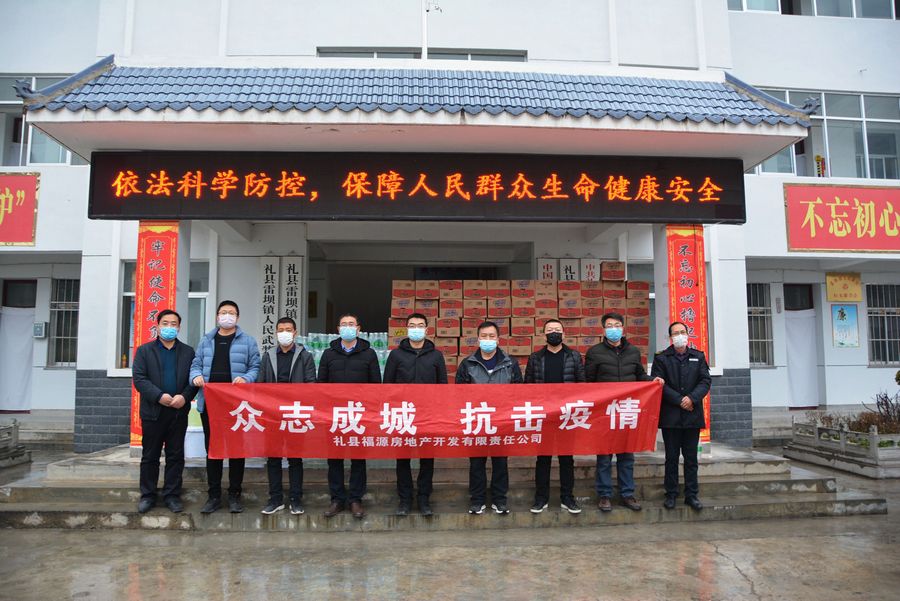 2月5日,礼县福源房地产开发有限责任公司,通过礼县红十字会向抗击在疫情一线的工作人员,捐赠了价值16.4万元的防疫物资,由爱心企业直接送到县疫情联防联控小组办公室、联防联控宣传组、礼县高速路口、县融媒体中心、盐官镇、雷坝镇、城关镇及土