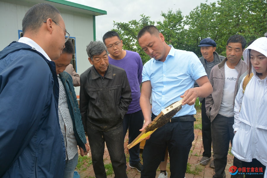 • 陇南中蜂养殖专家调研组在礼县城关镇农花中蜂养殖农民专业合社查看指导中蜂病虫害防治工作