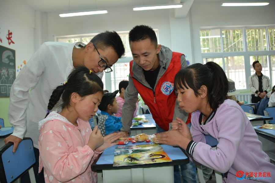 中国甘肃在线陇南讯 5月30日,礼县莲爱心公益协会组织10多名志愿者到礼县特殊教育学校,为该校的近30名残疾儿童送去学习书籍、节日蛋糕和水果等各种爱心用品,志愿者通过和孩子们一起做游戏、跳舞、唱歌等互动,来