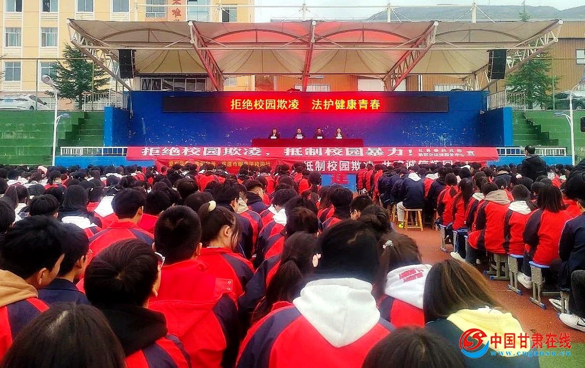 中国甘肃在线礼县讯 10月29日,礼县委统战部、县妇联、县司法局、甘肃恒谦律师事务所联合在礼县职业中等专业学校举办了“拒绝校园霸凌 法护健康青春”陇原巾帼普法校园行活动。礼县妇女儿童维权中心、执委婚调工作室负责人、县妇联执委、甘肃恒谦律师