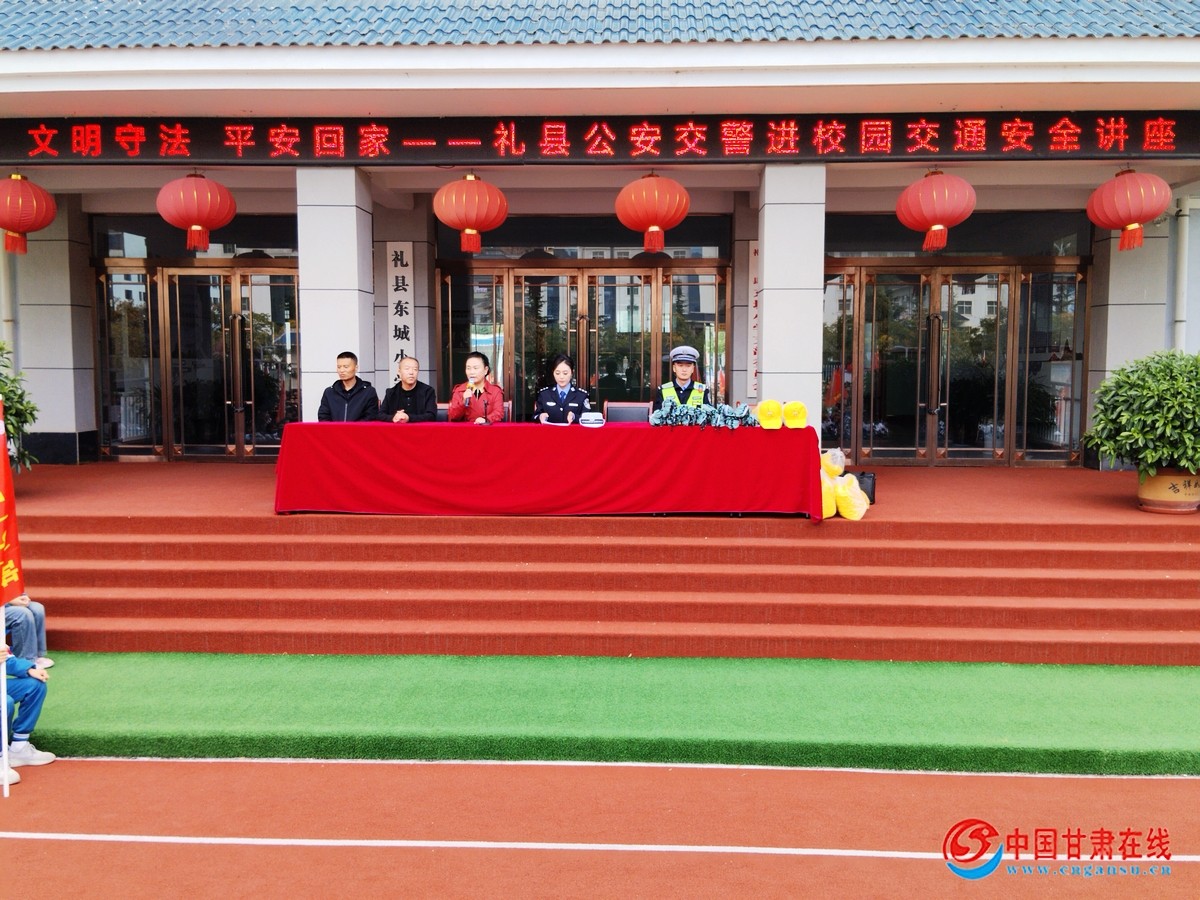 中国甘肃在线礼县讯 为进一步强化中小学生道路交通安全教育,提高师生的交通安全意识,礼县公安局交警大队宣传民辅警走进辖区各学校,以“文明守法 平安回家”为主题为在校师生送去交通安全知识讲座,通过生动有趣的讲解和互动体验,让交通安全知识深入人心
