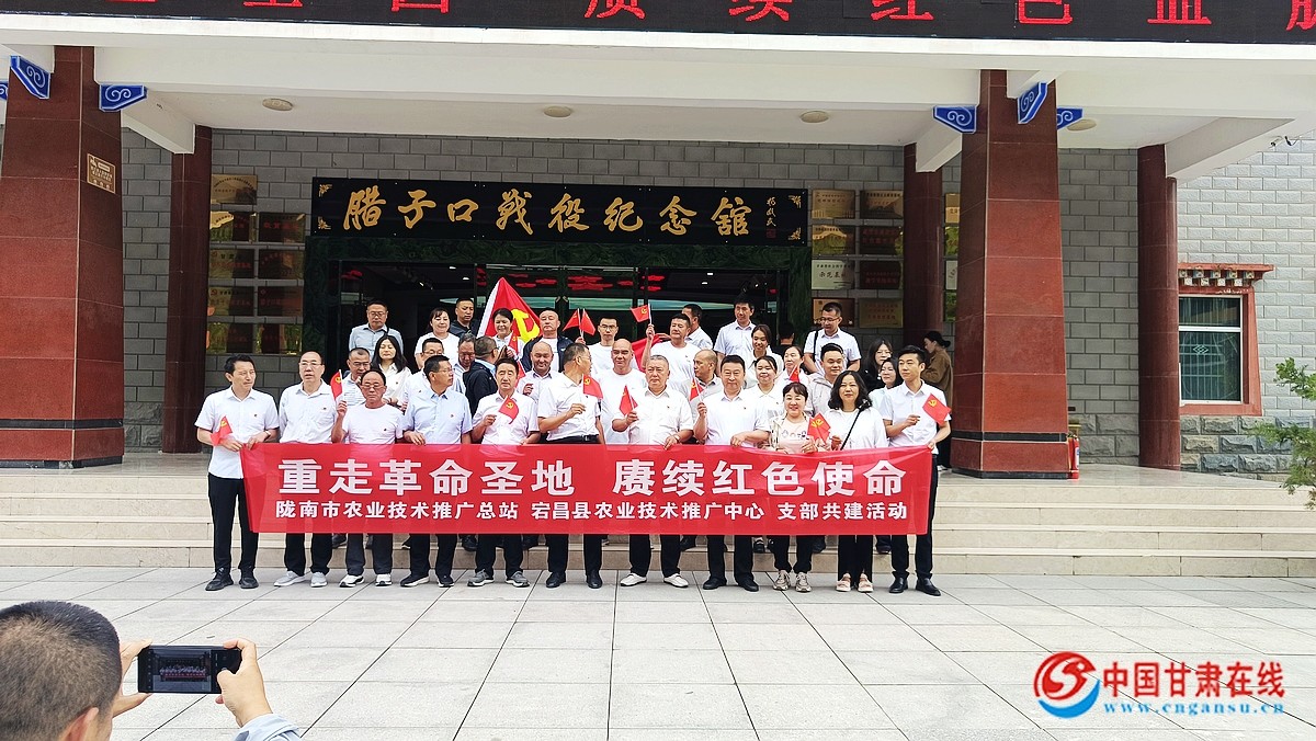 中国甘肃在线宕昌讯 7月1日,陇南市农业技术推广总站、宕昌县农业技术推广中心组织50多名党员赴红色教育基地开展“重走革命圣地赓续红色使命”庆“七一”支部共建活动。当日上午,全体党员怀着对革命先辈的崇敬,来到腊子口战役纪念馆、茨日那毛泽东故居