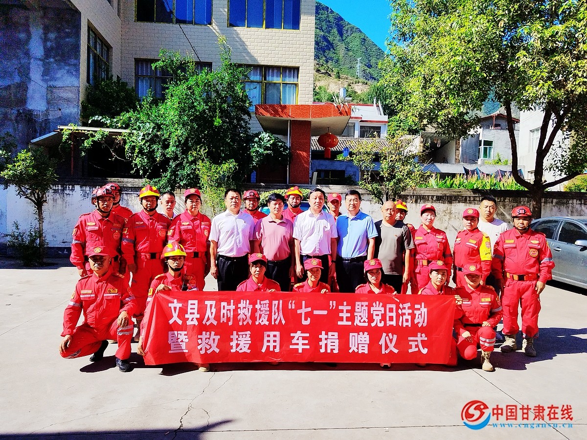 中国甘肃在线文县讯 7月1日,一场别开生面的主题党日活动在文县城关镇贾昌村举行,这是一场老兵之间爱的接力,也是关爱帮扶情的传递。2024年4月初,中国记协挂职文县人民政府副县长张乐在考察文县社会组织党建等情况中了解到,文县及时救援队在参与甘