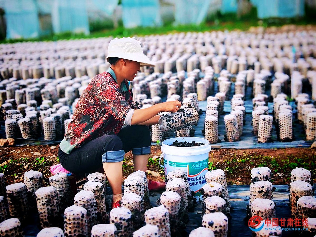 中国甘肃在线讯(通讯员:王雪梅)时下正值木耳丰收季,走进两当县左家乡大庄村木耳种植基地,一个个木耳菌棒整齐排列,菌棒上,一只只肉嘟嘟、黑绒绒的小木耳像一朵朵小花竞相绽放,放眼望去,黑压压的一片,长势喜人。 工人们穿梭在菌垄间,娴熟的将一朵朵