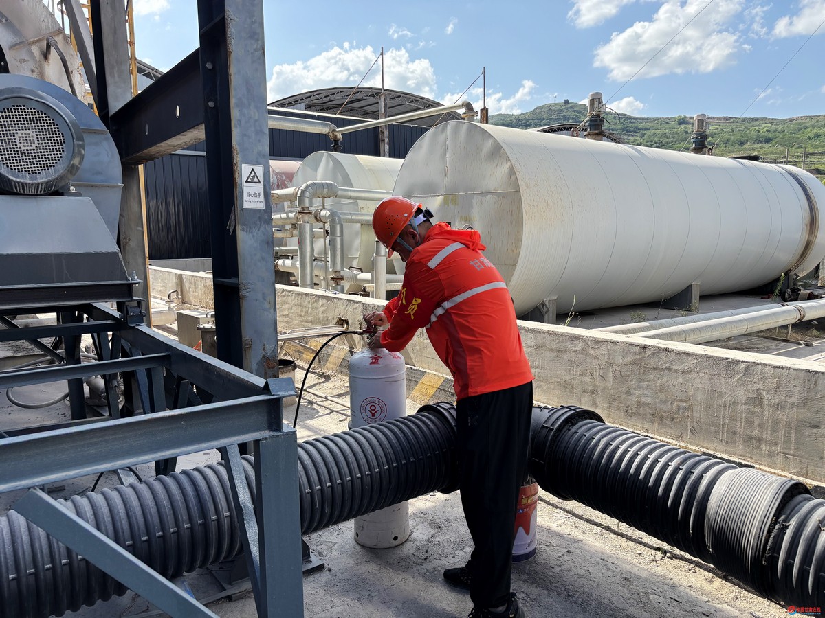 中国甘肃在线礼县讯 为保障高温天气下的生产安全,近日,陇南公路事业发展中心礼县公路段以“人人讲安全、个个会应急——查找身边安全隐患”为主题,开展拌合楼安全隐患排查行动。安全员从细微处入手仔细排查了消防器材、仪表盘、气压表、配电箱、燃烧乙烷管