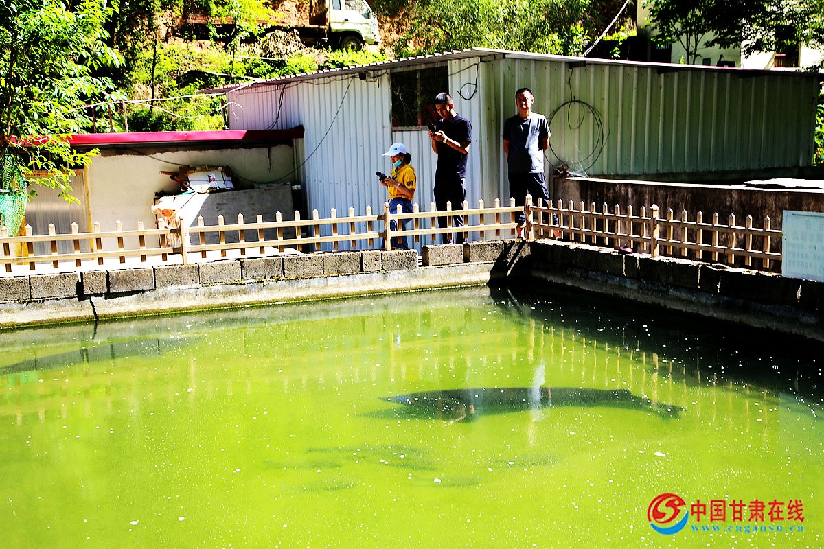 中国甘肃在线徽县讯 伴着声声蝉鸣,沿着弯弯曲曲、干净整齐的通村水泥路,聆听着路边潺潺溪水的轻吟浅唱,欣赏着满目苍翠的美景,笔者一行走进徽县虞关乡山岔村东沟社徽县剑峰鑫淼达生态农业有限责任公司的冷水鱼养殖基地,眼前一块块“井”子形装的方块鱼塘