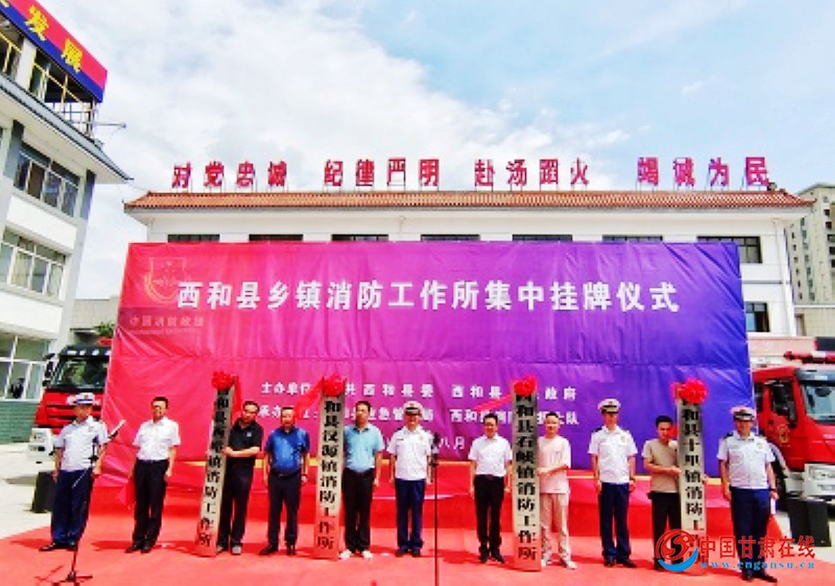 中国甘肃在线西和讯 为有效解决基层消防安全监管力量薄弱难题,进一步压实基层火灾防控责任,健全基层消防工作机制,全面提升社会面火灾防控能力。8月10日,西和县隆重举行乡镇消防工作所集中挂牌仪式,市消防救援支队支队长卢正宏、副支队长刘亚锋,县委