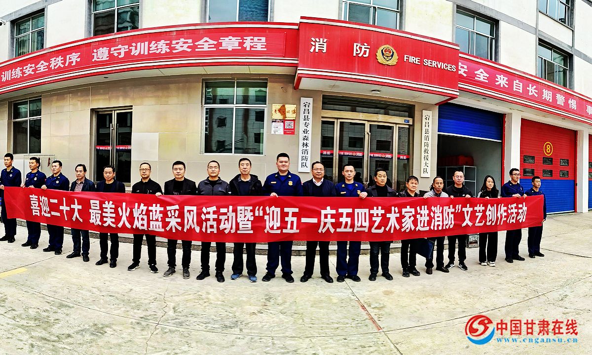 中国甘肃在线宕昌讯 五一劳动节来临之际,4月29日,宕昌县文联组织县书协、摄协、美协部分文艺志愿者深入县消防救援大队联合开展“喜迎二十大 最美火焰蓝”迎五一主题文艺采风创作新时代文明实践活动。书画家们首先参观了营区和队员们的训练,参与书画创