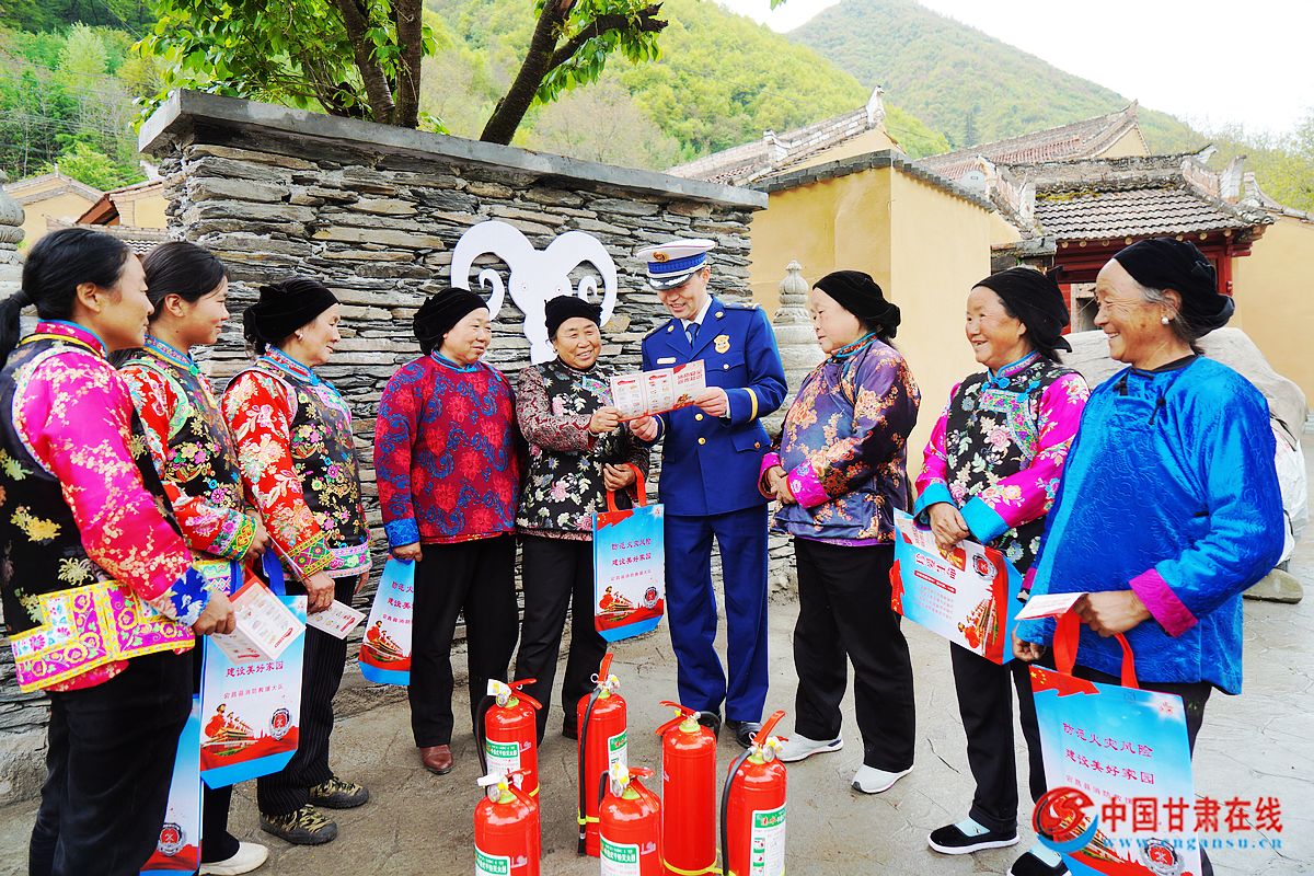 中国甘肃在线宕昌县 为做好“五一”小长假景区消防安全工作,提高景区防控火灾的能力,确保辖区火灾形势持续稳定。4月30日,陇南市宕昌县消防救援大队组织人员深入官鹅沟大景区和景区内的阴坪藏族村寨开展消防安全检查、进行消防安全知识宣讲,发放消防安