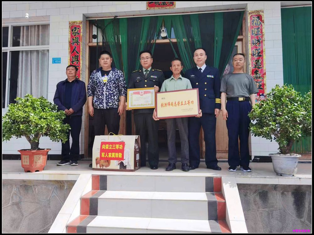 中国甘肃在线文县讯(供稿:张永刚、郭洋洋)为进一步弘扬新时代拥军优属光荣传统,营造“一人参军,全家光荣”的浓厚氛围。近日,文县人民武装部联合县退役局,前往陇南文县天池镇开展送喜报活动,为在部队荣立三等功的现役军士张洪伟家属送去喜报、奖牌和慰