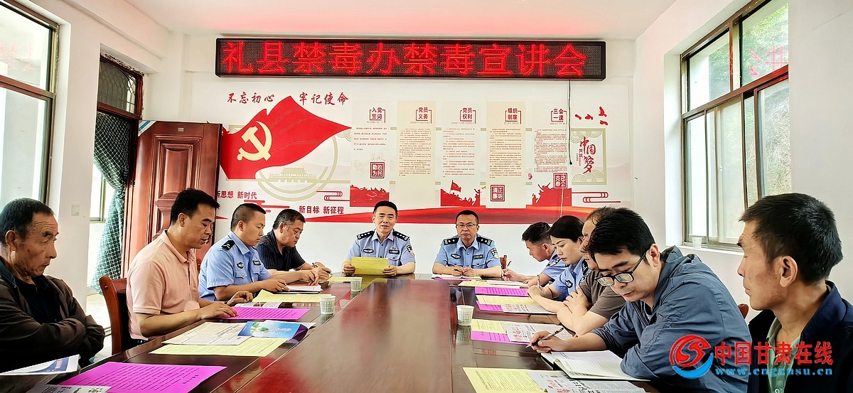 中国甘肃在线礼县讯 在“6.26”国际禁毒日即将来临之际,为了更好地推动全月禁毒宣传月活动持续深入开展,6月20日,礼县禁毒办联合公安局驻村帮扶队和城关派出所在城关镇杨河村开展禁毒宣传活动,为当地禁毒工作营造了浓厚氛围。在村党员活动室禁毒宣