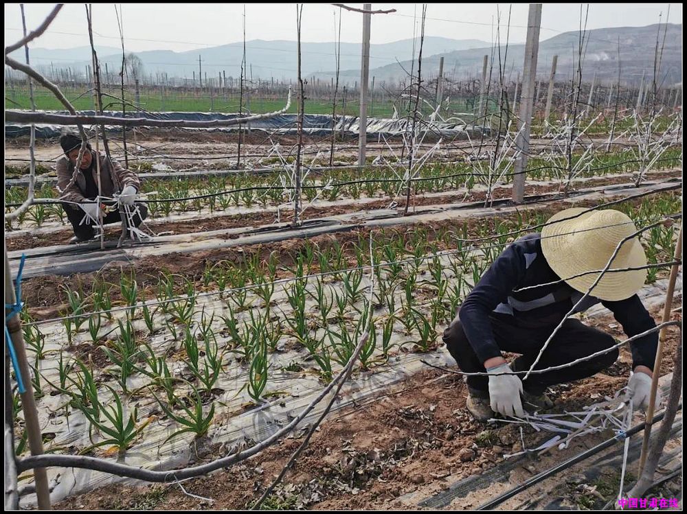 中国甘肃在线礼县讯(礼县融媒体中心通讯员王旦 王丹)阳春三月,大地回暖,正是春耕备耕的大好时节。在石桥镇汉阳村的矮砧密植苹果示范园内,村民们有的正忙着解开拉枝,为刻芽工作做准备,有的在用铁锹清除地里的杂草,一棵棵果树背靠立柱沐浴骄阳,一派生