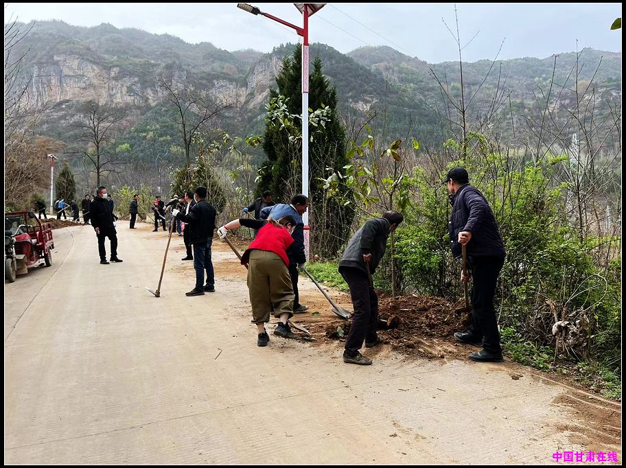 中国甘肃在线成县讯(通讯员:刘娟 茅海波)阳春三月好时节,植树造林正当时。近期,我镇各村党支部以党建为引领,充分发挥战斗堡垒作用,在做好疫情防控工作的同时,组织党员、群团组织、公益性岗位人员,对辖区道路两边开展春季植树造林活动,推进辖区人居