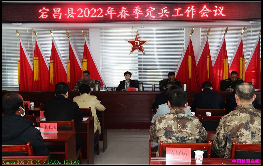 中国甘肃在线宕昌讯(通讯员 马涛 焦小军)3月14日下午,宕昌县2022年春季定兵工作会议在县人武部五楼会议室召开。陇南军分区上校处长李军林,县委常委、常务副县长方金娥,县委常委、县人武部上校部长何凡,县人武部上校政委胡义文等领导出席会议。
