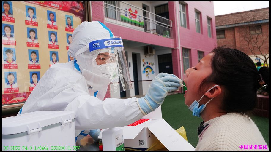 中国甘肃在线两当讯(通讯员:高浩东)“来,小朋友,把嘴巴张开,啊……”近日日,为进一步做好校园疫情防控工作,充分发挥核酸检测在疫情防控中的重要作用,两当县城关小学为全校973名师生开展了第一轮核酸检测。在核酸采集现场,记者看到,医护人员全副