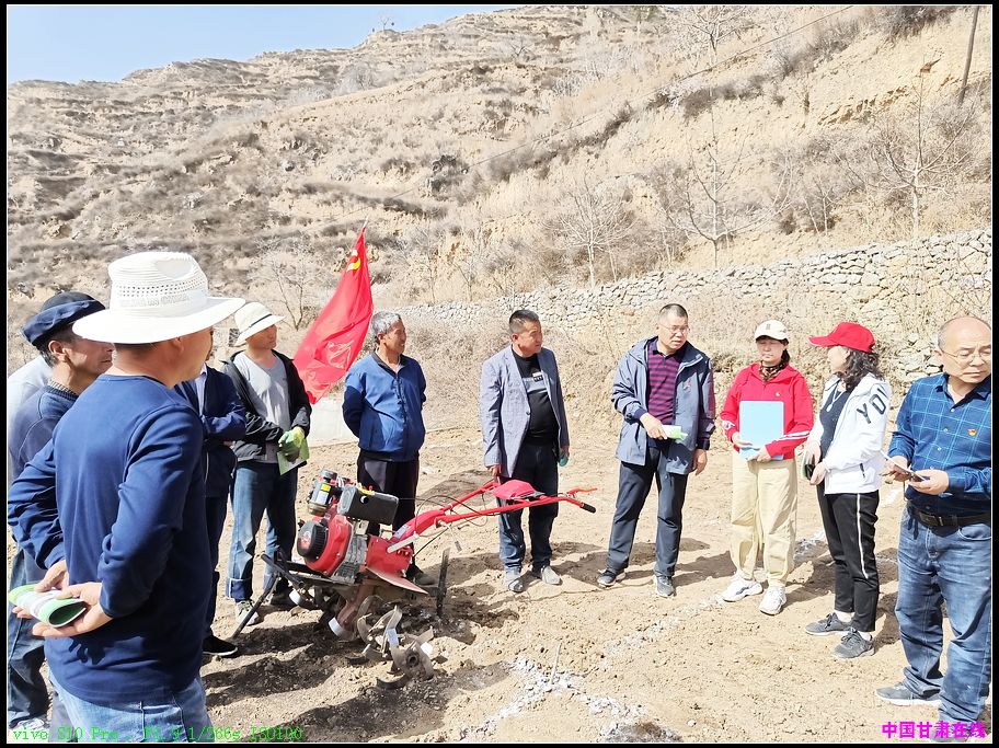 中国甘肃在线成县讯 3月16日的大安山村,清风徐徐,绿草茵茵,鲜红的党旗下,成县苏元镇机关党支部全体党员个个精神抖擞地聚集在碾坪社花椒产业园开展花椒栽植“主题党日”活动。眼下,正值花椒栽植黄金时节,为确保花椒及时栽植,进一步夯实产业发展基础