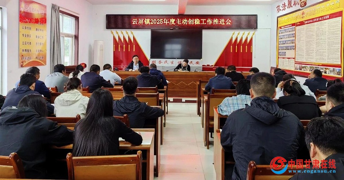 中国甘肃在线两当讯 5月30日,两当县云屏镇召开2025年度主动创稳工作推进会,全体镇村干部参加会议。 会上,学习传达了县委政法委员会2025年第一次全体(扩大)会议暨全县主动创稳行动推进会议精神,并就抵制高额彩礼、婚姻矛盾纠纷排查、扫黑除