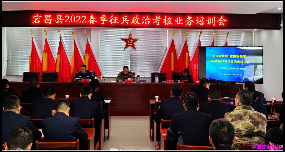中国甘肃在线宕昌讯(通讯员 马涛)“下面,我就做好2022年春季征兵政考工作再提几点要求:要主动学习新规定、新变化… …” 近日,陇南市宕昌县征兵办公室召开2022年春季征兵政治考核业务培训会。会上县人武部上校政委胡义文安排部署今年政考工作