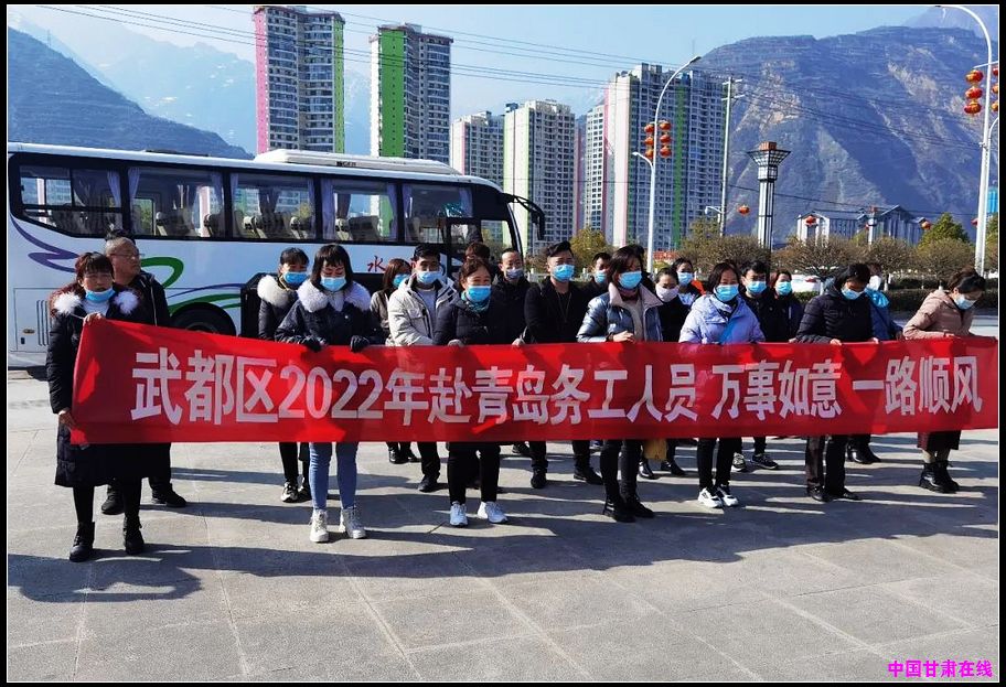 中国甘肃在线武都讯(通讯员王治)近日,陇南市就业局、武都区总工会、区妇联、区劳务局在市政广场组织欢送武都区第二批赴青岛务工人员,来自蒲池乡、汉王镇、甘泉镇和两水镇的31名务工人员在市政广场统一出发,赴青岛市海信空调就业。近年来,武都区和青岛
