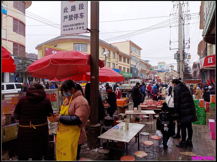 中国甘肃在线宕昌讯 时值腊月大寒节气。昨夜下雪,今日犹阴。居家无聊,去街上漫步。哈达铺在岷山脚下的一个盆地,中间平坦,四面环山。历史悠久,是文化名镇,红色旅游胜地。物产丰富,是千年药乡。今天不是逢集,不像逢集那样人流熙熙攘攘,摩肩接踵,但也