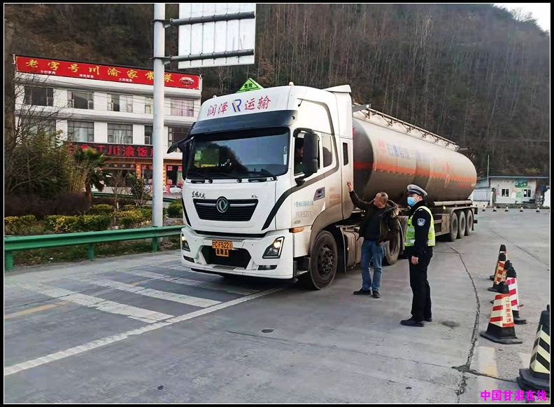 中国甘肃在线陇南讯(通讯员 张文庆 张小斌)12月26日下午17点,中国石油甘肃陇南销售分公司文县余家湾稽查点在例行检查时,发现从武罐高速下来车号为宁CF**21运输0#柴油33吨油罐车,司运人员无法提供全套合法手续,随后稽查人员配合交警将