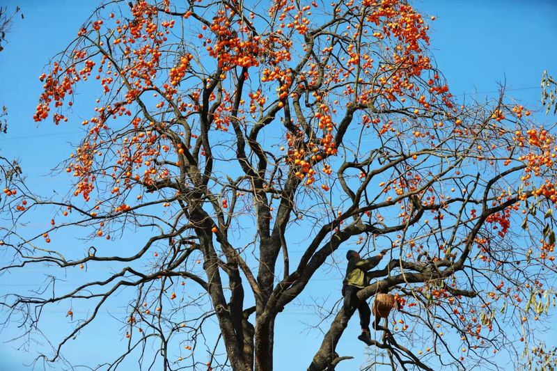 通讯员 陈争强连日来,成县陈院镇在干群合力密织防“疫”网的同时,在冬日收购柿子制作柿饼,积极引导群众防疫、生产“两手抓”。图为村民在采摘柿子(武磊摄)为增加群众收入,成县陈院镇马坝村将村集体经营的“好客来”农家乐改造成制作柿饼的小作坊,组织