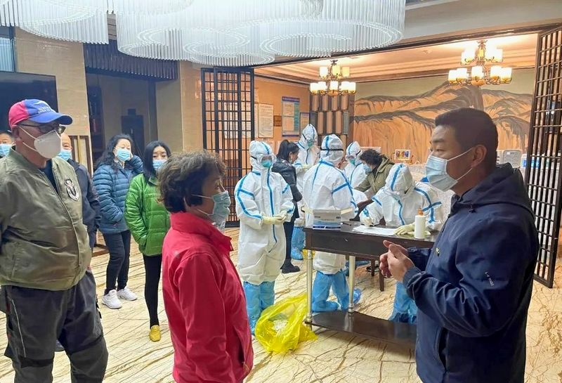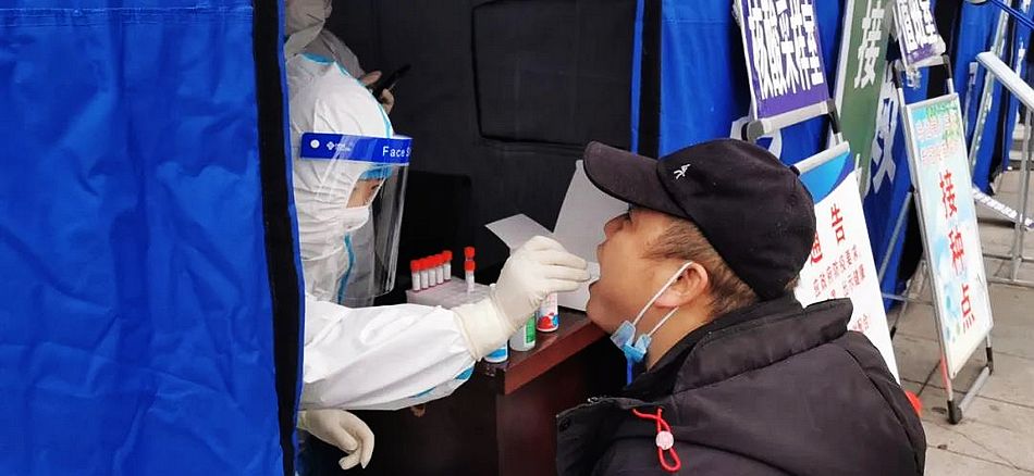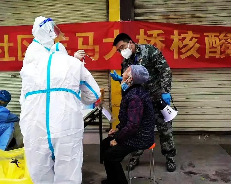 穿上蓝马甲、手持测温枪、搭建临时帐篷、布置检测场地、现场消杀、维持秩序、协调服务……迎着寒风,苗承君又开始了每一天的日常工作。“疫情面前,我是一名党员。作为城关镇负责人,我必须冲锋在前。”苗承君介绍, 连日来,镇村社220名党员志愿者,每天