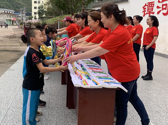 中国甘肃在线成县讯(通讯员 费霏)聚焦“一老一小一困”人群,践行巾帼志愿使命担当。近日,成县广场舞协会的“爱心妈妈”们冒雨走进镡河乡开启了一场关爱之行。成县广场舞协会的20名会员代表带着会员们自筹2000元资金购买的儿童书包、文具等学习用品