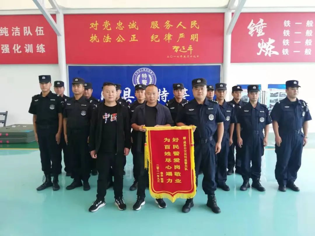 中国甘肃在线成县讯(通讯员 刘建军 张利波) 9月16日下午,成县群众冒雨为成县公安局特巡警大队送来一面印有“好民警爱岗敬业、为百姓尽心竭力”字样的锦旗,表达对特巡警队员帮其找回走丢小孩的感激之情。9月12日晚8时40分,特巡警大队接到县局