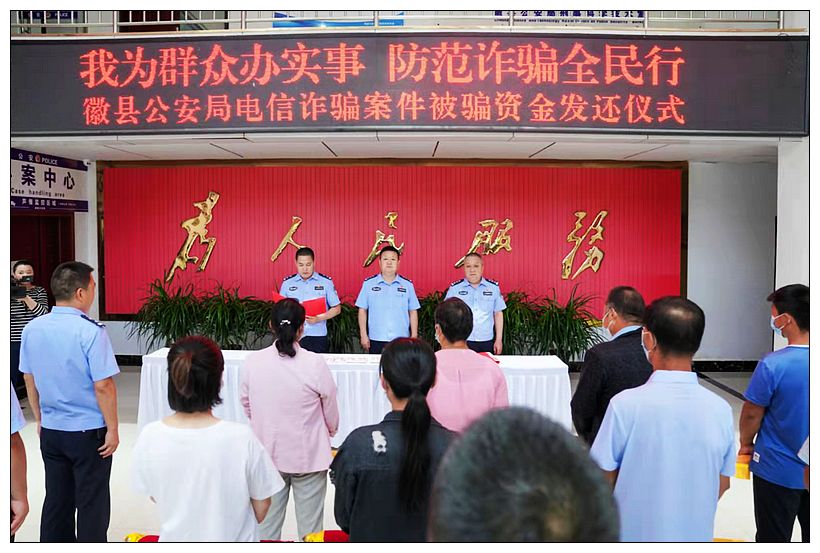 • 徽县警方为群众追回电信网络诈骗资金24.8万元!