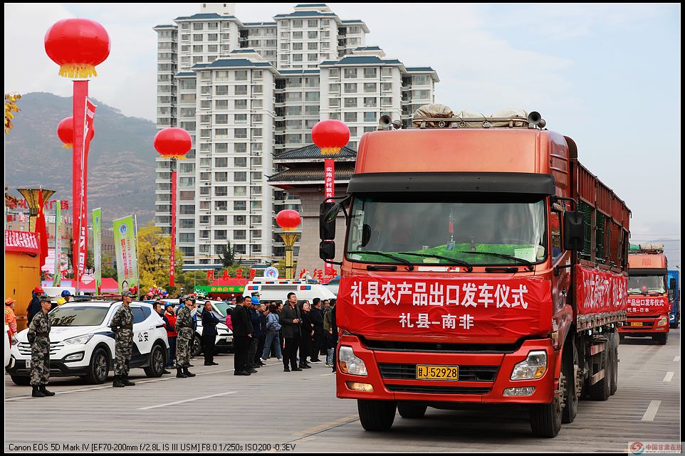 中国甘肃在线礼县讯(赵小春报道)随着县一声汽笛长鸣,满载着礼县特色农产品的10辆货车统一发车,销往国内外。10月16日,陇南市礼县秦人广场举行农特产品销售发车仪式。县委副书记周定堂宣布发车,县委常委、政法委书记李元,县人大副主任张春晖,县直