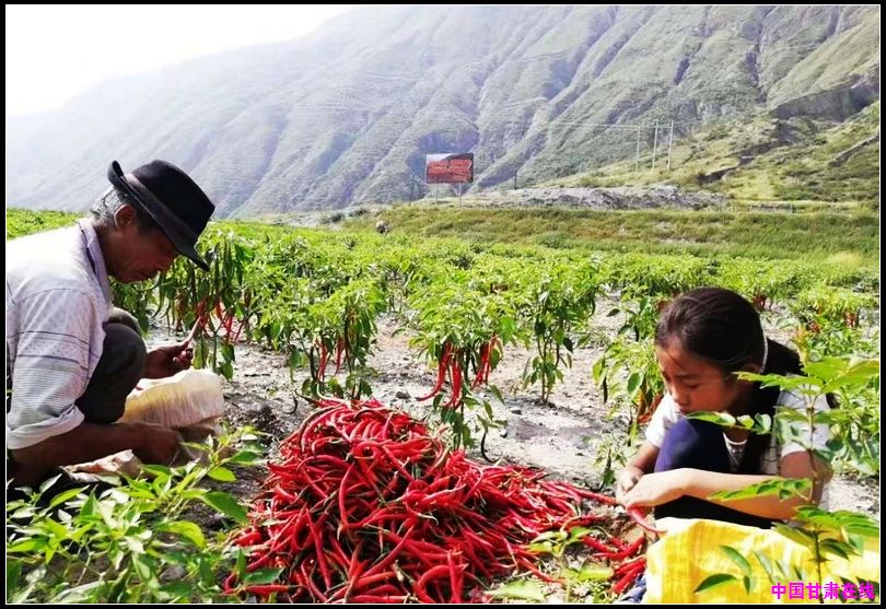 中国甘肃在线武都讯(通讯员 王治 刘文文)秋天是丰收的季节,成熟的季节,也是希望的季节。八月里,走进陇南市武都区坪垭藏族乡,蔚蓝的天空下一片片红艳艳的辣椒随风涌动,格外耀眼,清风携带着辣椒的芳香扑面而来,到处一派丰收景象。2021年坪垭藏族