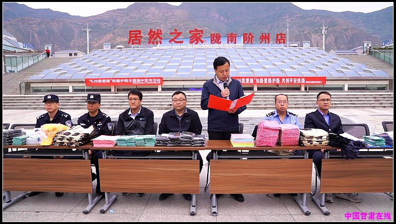 中国甘肃在线武都讯(通讯员 李剑超)为进一步推进推进平安铁路建设,推进依法护路,构建良好路外环境,确保铁路沿线社会治安稳定和铁路运输安全畅通,确保人民群众生命安全。5月26日“5.26我爱路”主题宣传活动在陇南市武都区火车站阶州广场举行,市