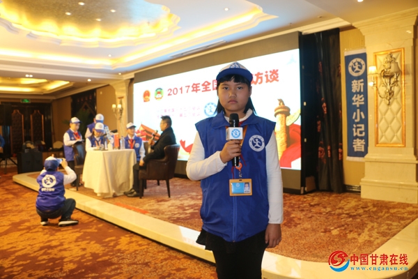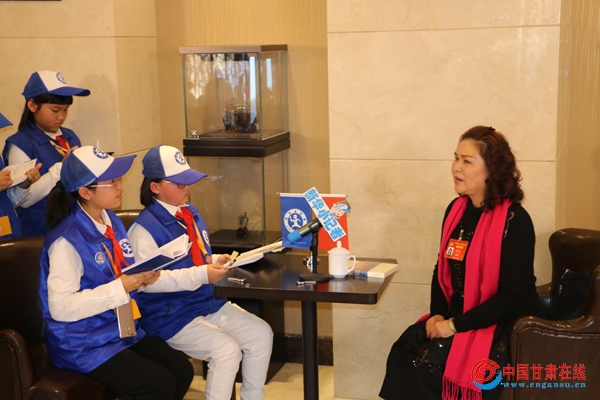 图为:甘肃平凉新华小记者王涵采访全国政协委员苏燕玲