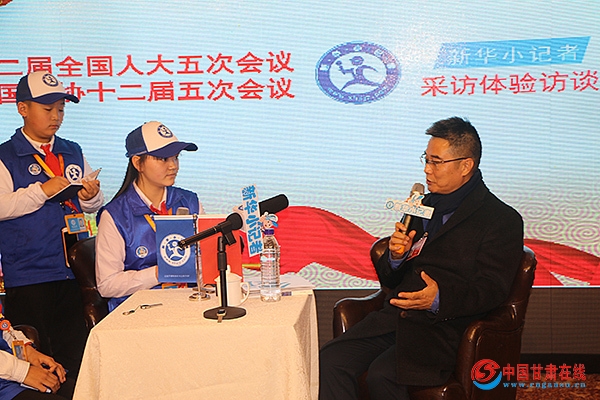 图为:甘肃平凉新华小记者王菲采访全国政协委员张建国
