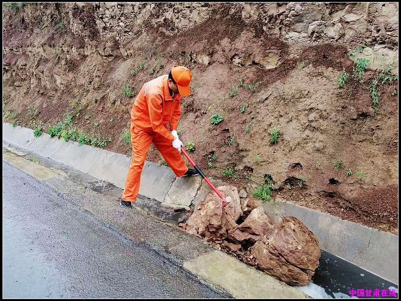 X044线、S203线出现路面、边沟落石及防排水系统堵塞,对行车造成安全隐患。见状,该段立即组织抢险人员上路消除隐患,保障公路安全运营。