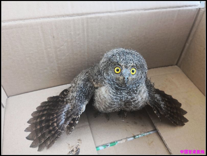 7月17日,华亭市民徐某带着一只疑似猫头鹰的幼鸟前往安口派出所,称其是在自家菜地里发现的,希望民警进行救助。