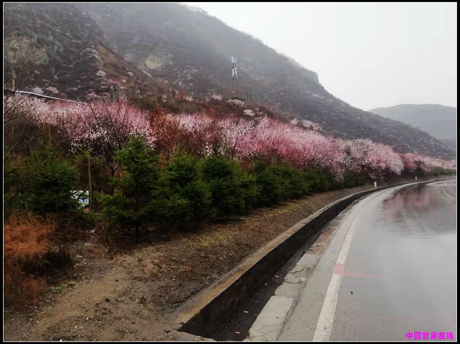 8点40分,队长惠金峰在工作群里汇报“铜城峡落石已清理。” 并发来一张图片,清晰可见路面落石塌方已被清理得干干净净。图中一抹靓丽的桃花吸引了大家的眼球,当桃花粉与公路橘邂逅在春天里,雨天也变得浪漫。