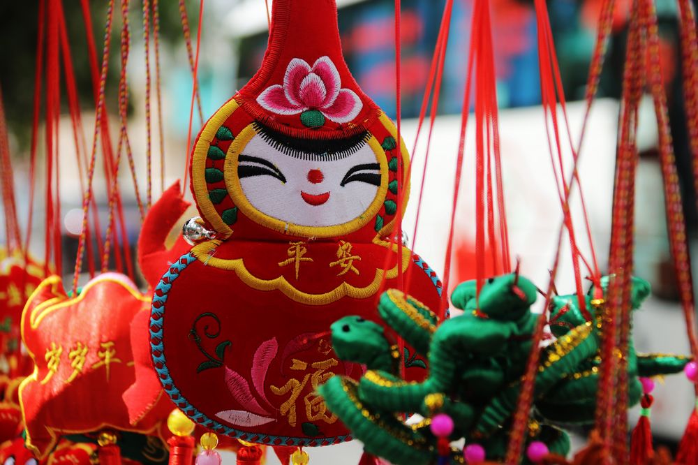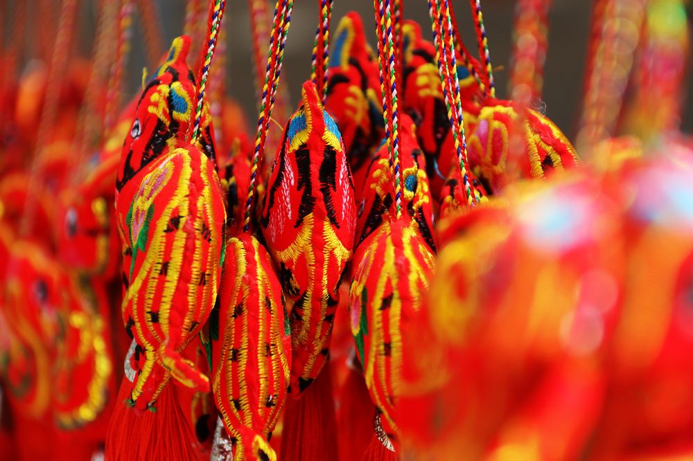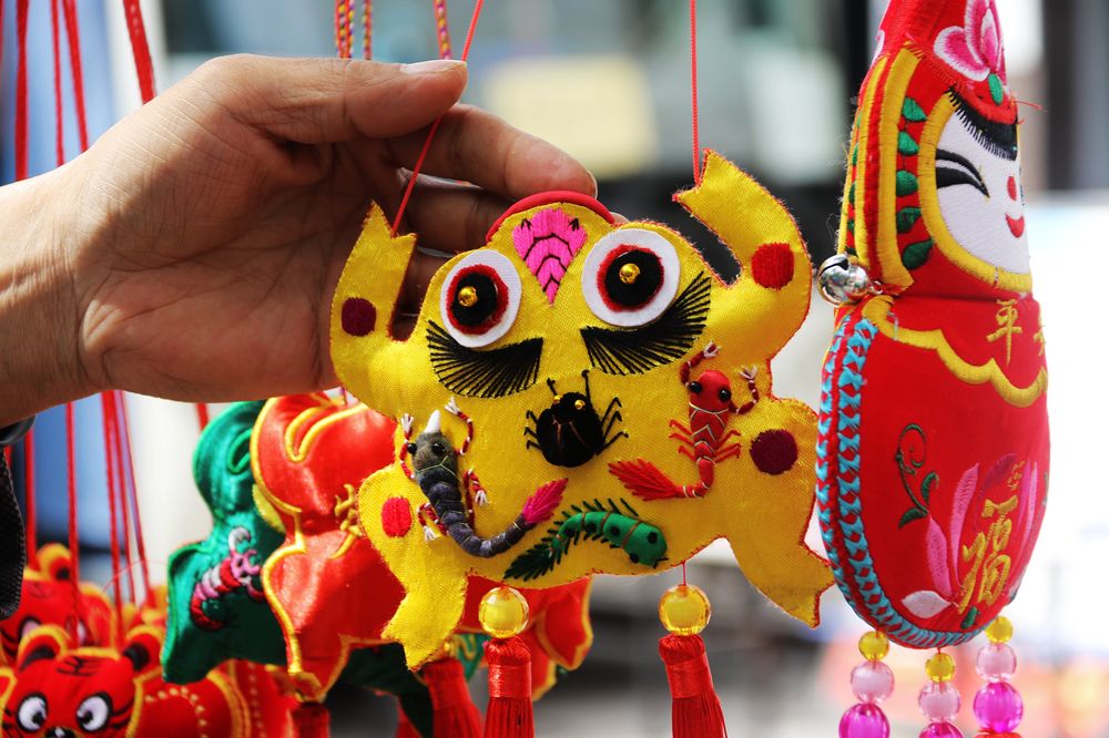 中国甘肃在线崇信讯 (通讯员 梁蕊)端午节临近,精致的荷包、五彩绳等端午节小挂件纷纷出现在平凉市崇信县城街头,一些造型独特的巨型荷包更是吸引市民的眼球。