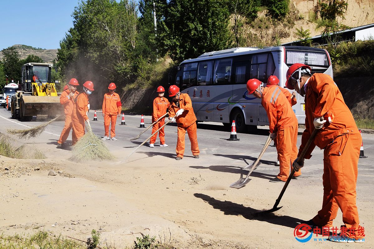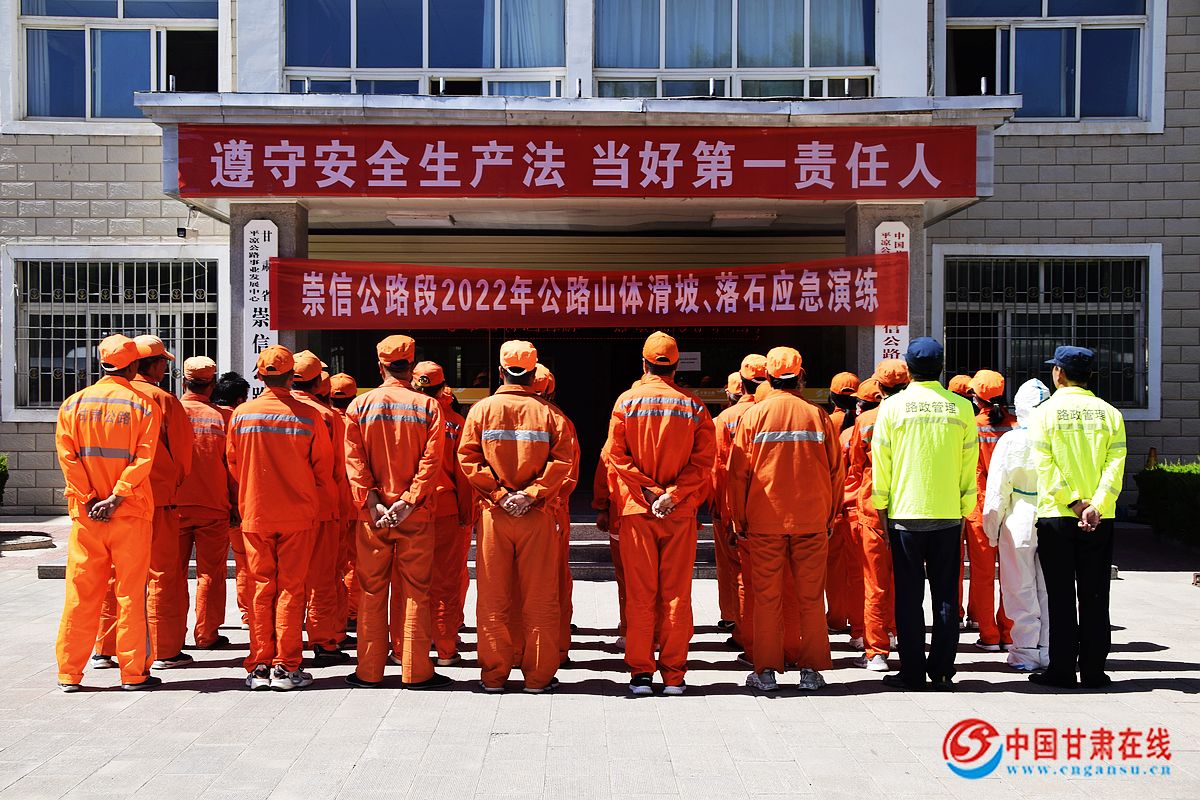 中国甘肃在线崇信讯 “报告段应急值班室,G312线沪霍公路K1797+400处发生山体滑坡并伴有落石,滑坡侵占半幅路面,目测大约200余立方米,现场无人员伤亡,无滞留车辆,道路通行严重受阻,请立即汇报分管领导,派人增援”。在一阵急促的电话铃声中,“平凉市崇信县公路段2022年公路山体滑坡、落石应急演练”拉开了序幕。