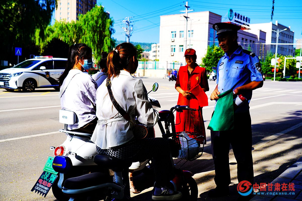 中国甘肃在线崇信讯(通讯员:赵亚楠 王志瑞)在推进文明交通出行的“战场”上,“警察蓝”搭配“志愿红”,齐心协力保平安。