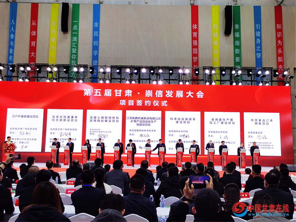 中国甘肃在线崇信讯 3月19日,第五届甘肃·崇信发展大会暨强县域行动招商大会在崇信县体育中心举办。会上共签约项目49项,签约金额103.39亿元。其中崇信县执法局与大行有限公司签约的混凝土预制构件和民用商砼建设项目,金额1.1亿元。
